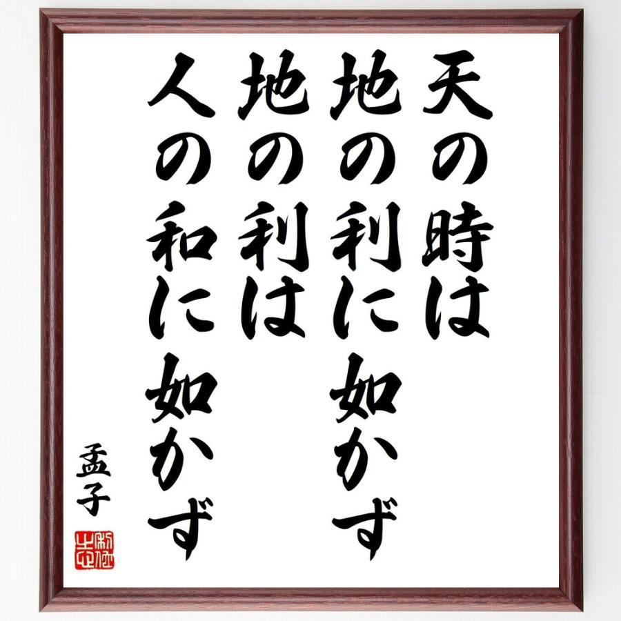 孟子の名言書道色紙 天の時は地の利に如かず 地の利は人の和に如かず 額付き 受注後直筆 Z1649 直筆書道の名言色紙ショップ千言堂 通販 Yahoo ショッピング